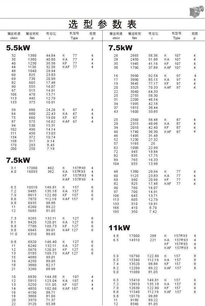 選型參數表5.5kW(續(xù))和7.5kW,11kW
