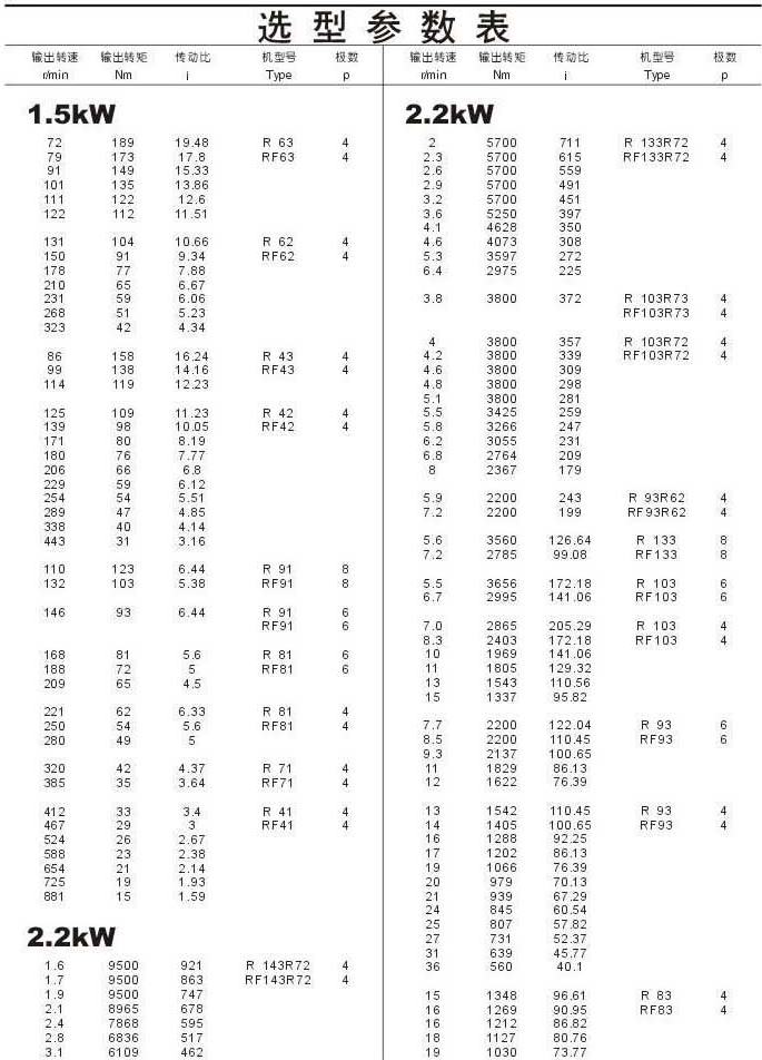 選型參數(shù)表1.5kW(續(xù)),2.2kW