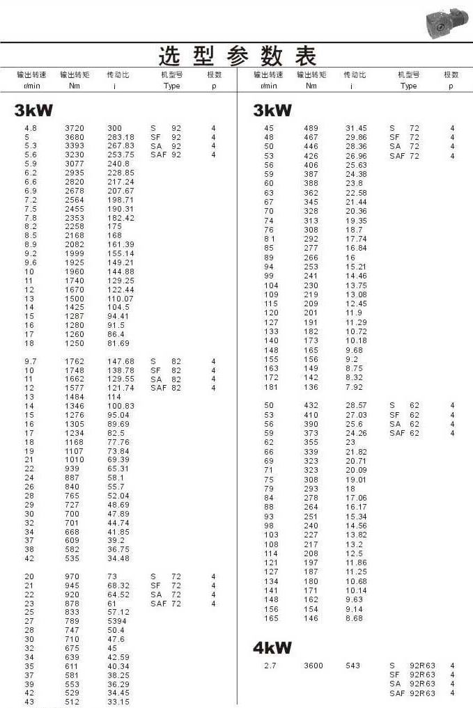 選型參數表3kW(續(xù))和4kW