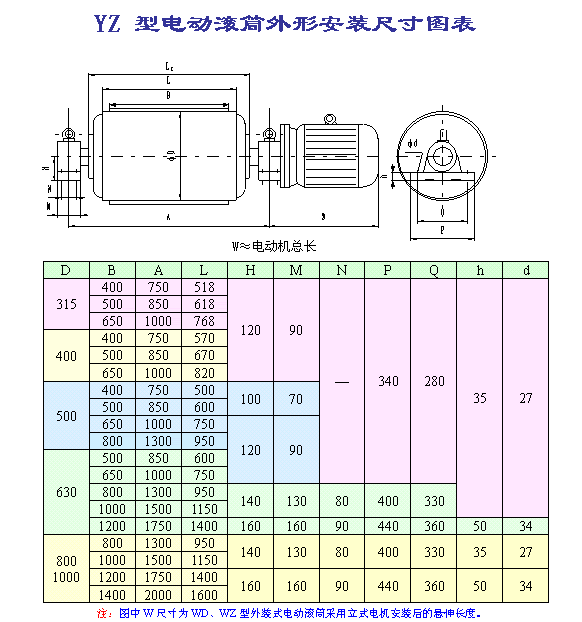 (1)因目前外裝式電動滾筒尚未制定相關(guān)行業(yè)標(biāo)準(zhǔn),本廠將該型號電動滾筒首位代號用W(“外裝”的首位漢語拼音)表示。外裝式電動滾筒外置電機(jī)可分為立式電機(jī)和臥式電機(jī),用戶訂購時請加以說明;